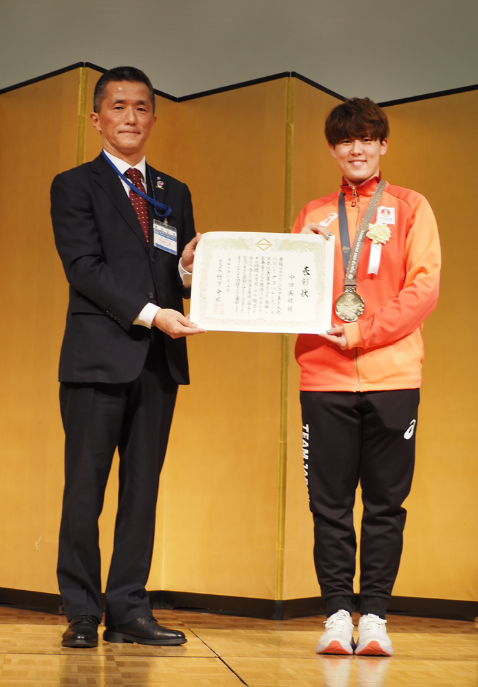 2025年11月に開催された「第25回夏季デフリンピック競技大会〜東京2025」(聴覚障害者のための世界競技大会)女子バレーボール日本代表で港北区在住の中田美緒さんも表彰状を受け取り記念撮影を行いました