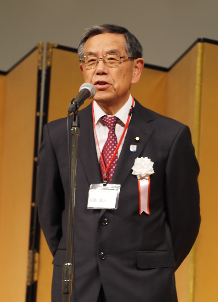 横浜市歌の斉唱の後、実行委員長で港北区連合町内会・日吉地区連合町内会の青博孝会長が年頭の挨拶。「世界をみると中国、ベネズエラ、そしてウクライナと国際情勢が厳しくなっているが、港北区の地域で活躍されている皆様がこのように集まっていただき御礼申し上げたい。少しでも地域の交流が少しでも広がり地域の発展につながるように」との想いを伝えました